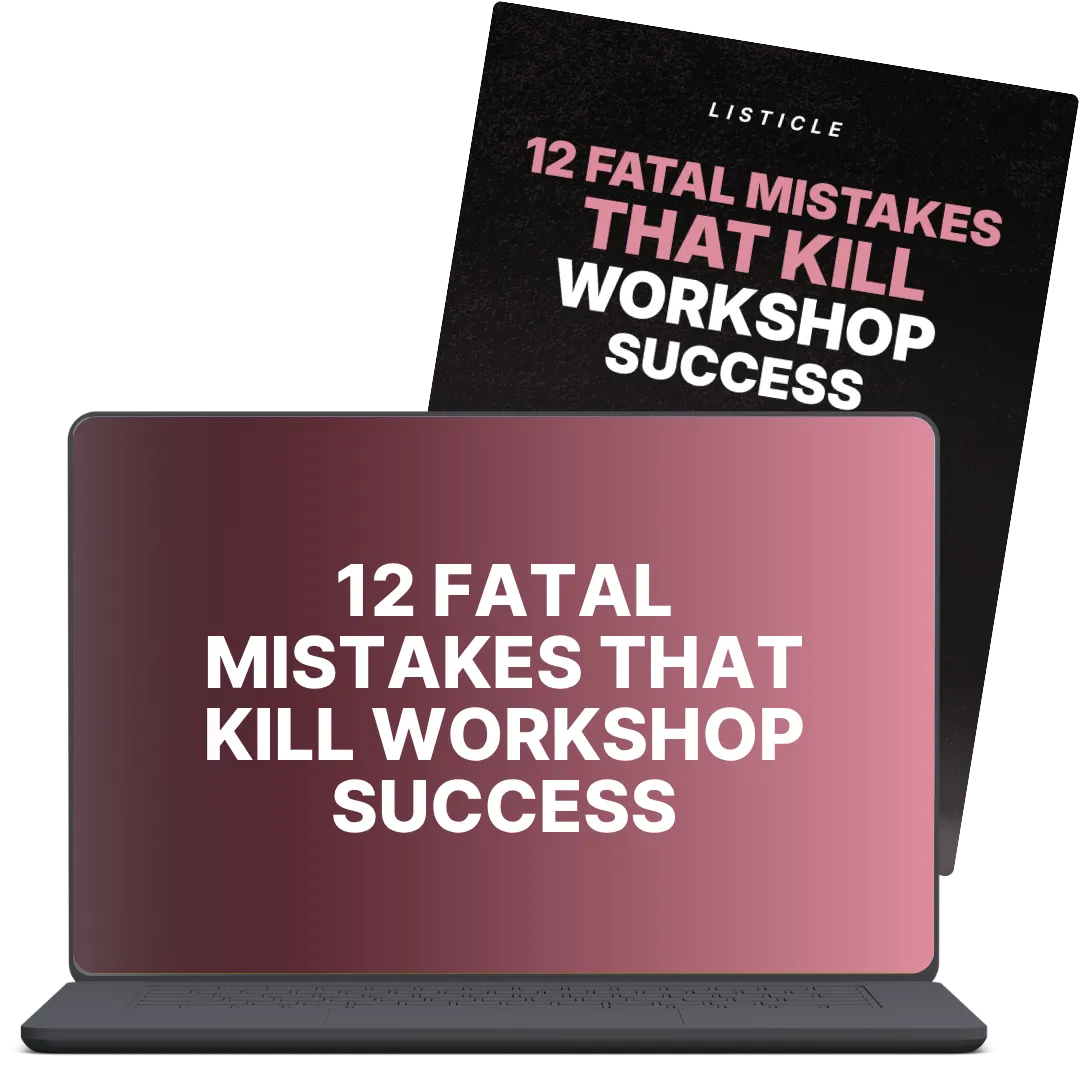 BONUS #2: 12 Fatal Mistakes That Kill Workshop Success: Avoid the mistakes that keep most experts underpaid and overlooked. From weak positioning to poor delivery and missed follow-ups, this shows you exactly what to avoid so you can skip years of trial and error.